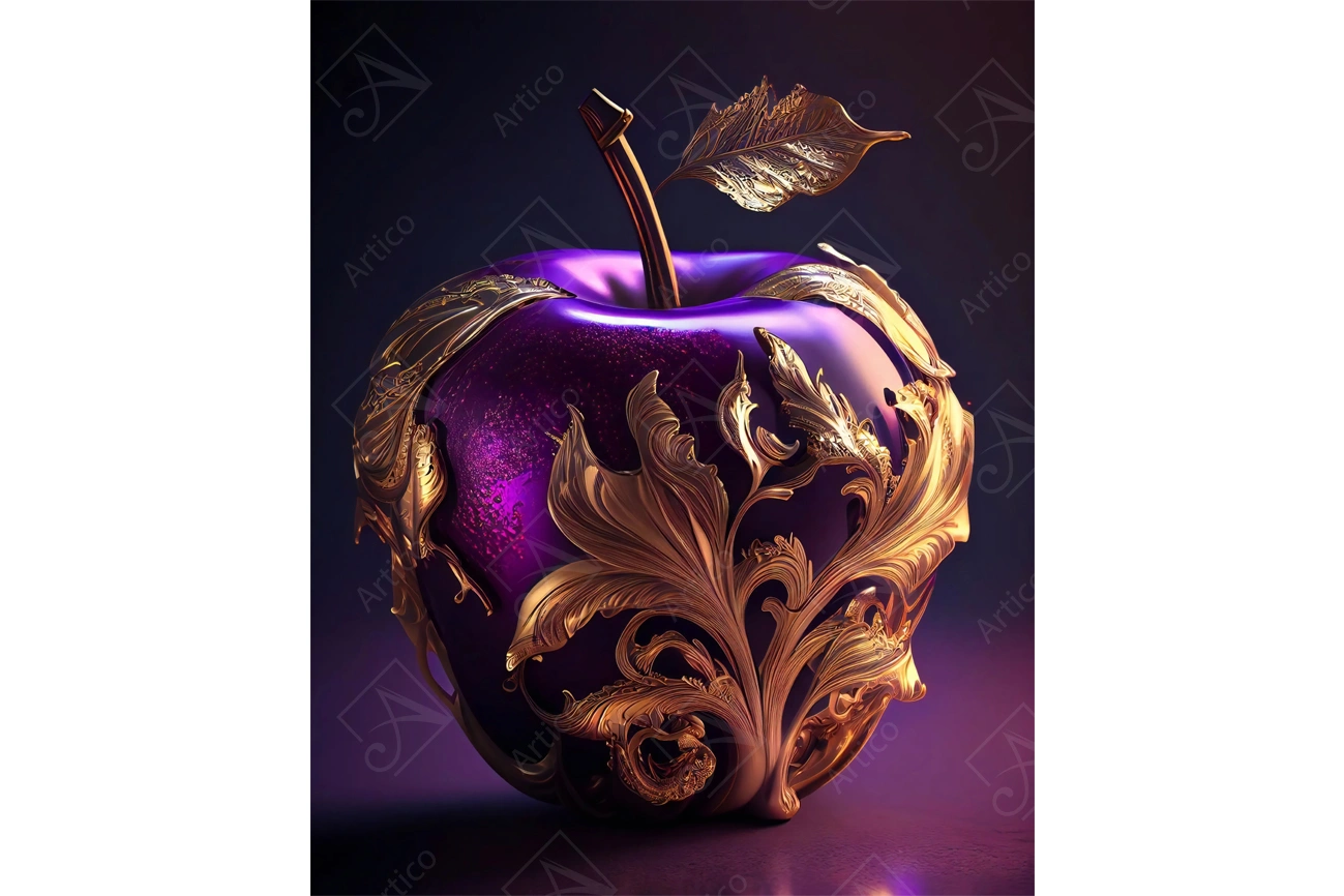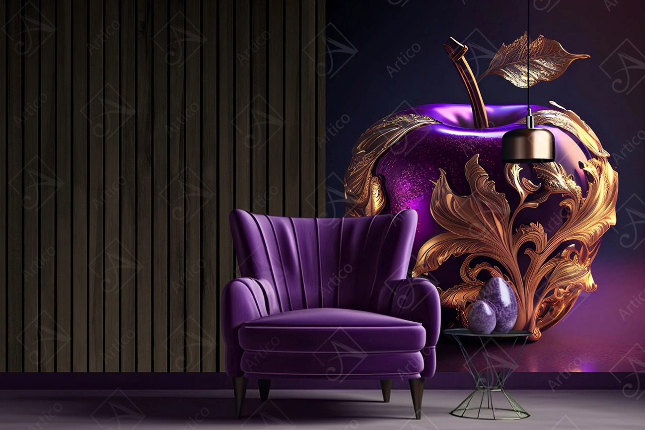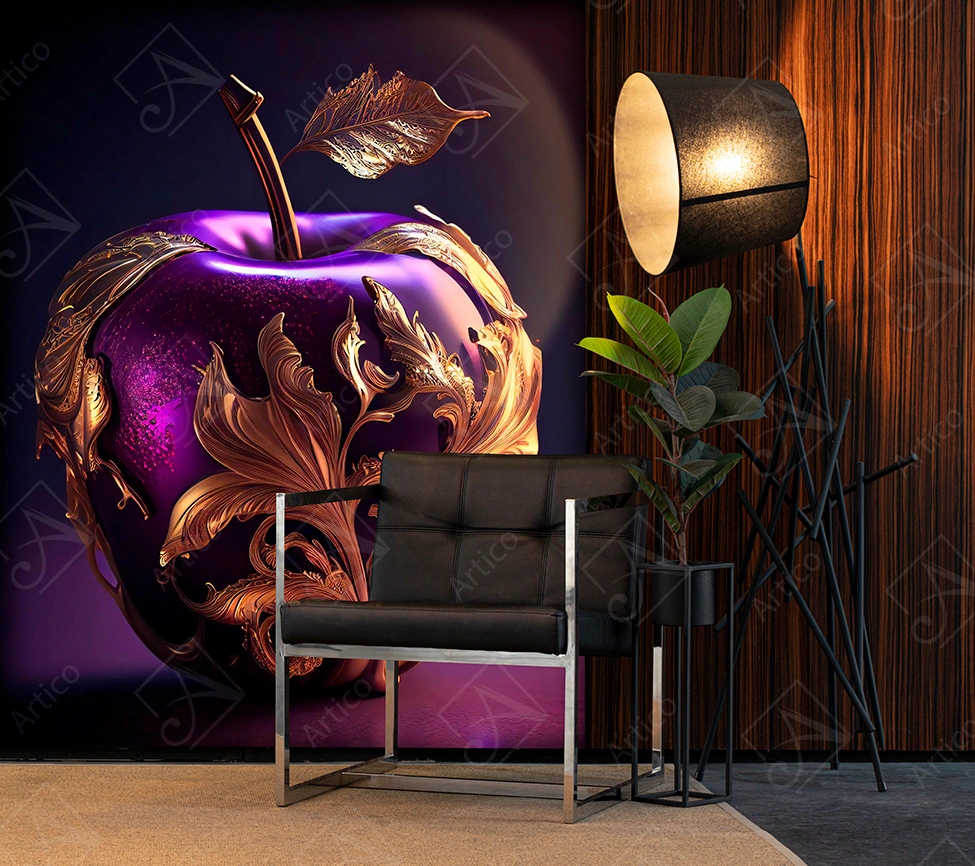 Purple Apple Wallpaper With Gold Ornaments on Black and Purple Gradient Background